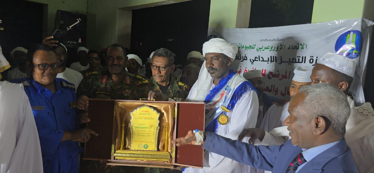 كرم الإتحاد الأورعربي للجيوماتك الحاج أزهري المبارك بترشيحه لنيل جائزة التميز الإبداعي في ريادة الأعمال والعمل الإنساني التي ستسلم للمرشحين من جميع أنحاء العالم في أبريل القادم بمدينة ليون الفرنسية، وذلك بموجب قرار الإتحاد في جلسته رقم ( ٤٩٢٣) ، وبعد توصية المؤسسات الرسمية والجهات المختصة ومنظمات المجتمع المدني ، وتعتبر الجائزة منصة عالمية تحتفي بالمبدعين في مختلف المجالات من جميع أنحاء العالم، وتهدف إلى دعم وتشجيع المبدعين في. مختلف المجالات وتحفيز المبادرات.
