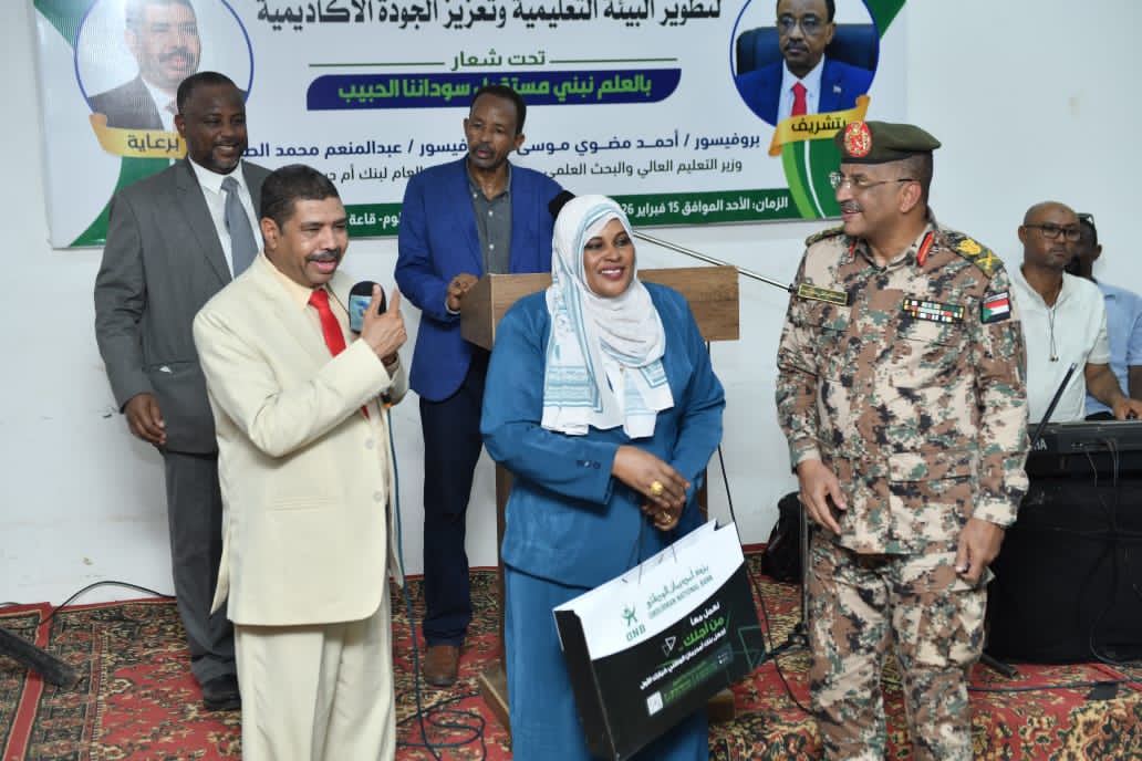 وكانت وزارة التعليم العالي والبحث العلمي قد كرمت في الحفل د.محمد الفاتح الفكي رئيس مجلس ادارة بنك امدرمان الوطني والبروفيسور عبدالمنعم محمد الطيب المدير العام للبنك تقديرا لدورهم في دعم الجامعات