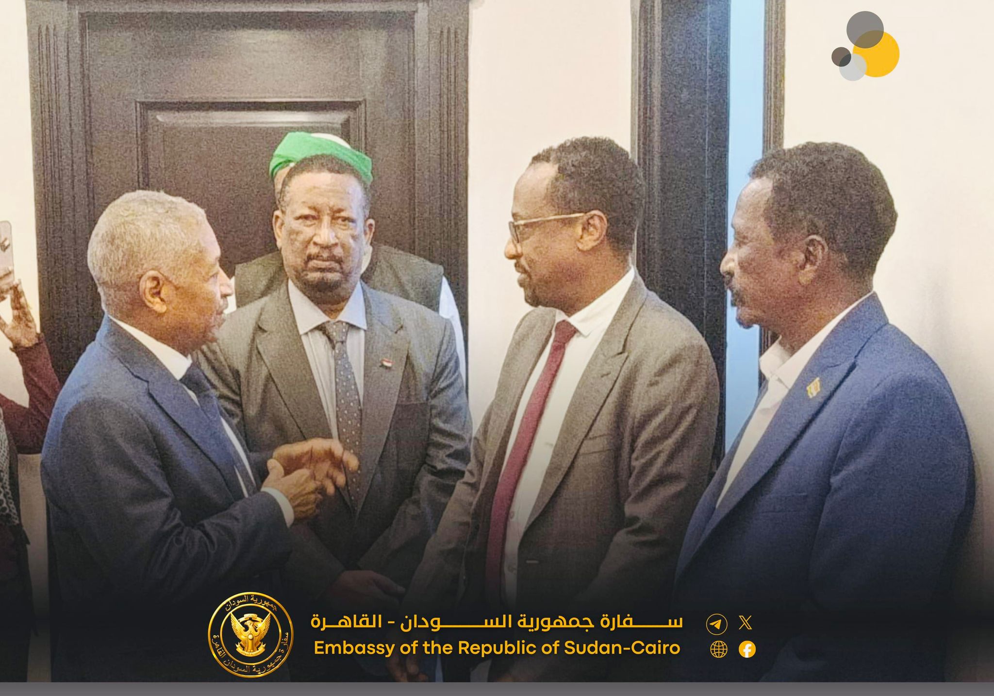 زار وزير الثقافة والإعلام والآثار والسياحة، خالد الإعيسر، اليوم، المقر الجديد لسفارة السودان في العاصمة المصرية القاهرة، حيث كان في استقباله سفير السودان لدى جمهورية مصر العربية، السفير الفريق أول ركن مهندس عماد الدين مصطفى عدوي، إلى جانب المندوب الدائم لدى جامعة الدول العربية وكوادر السفارة من دبلوماسيين ومستشارين.