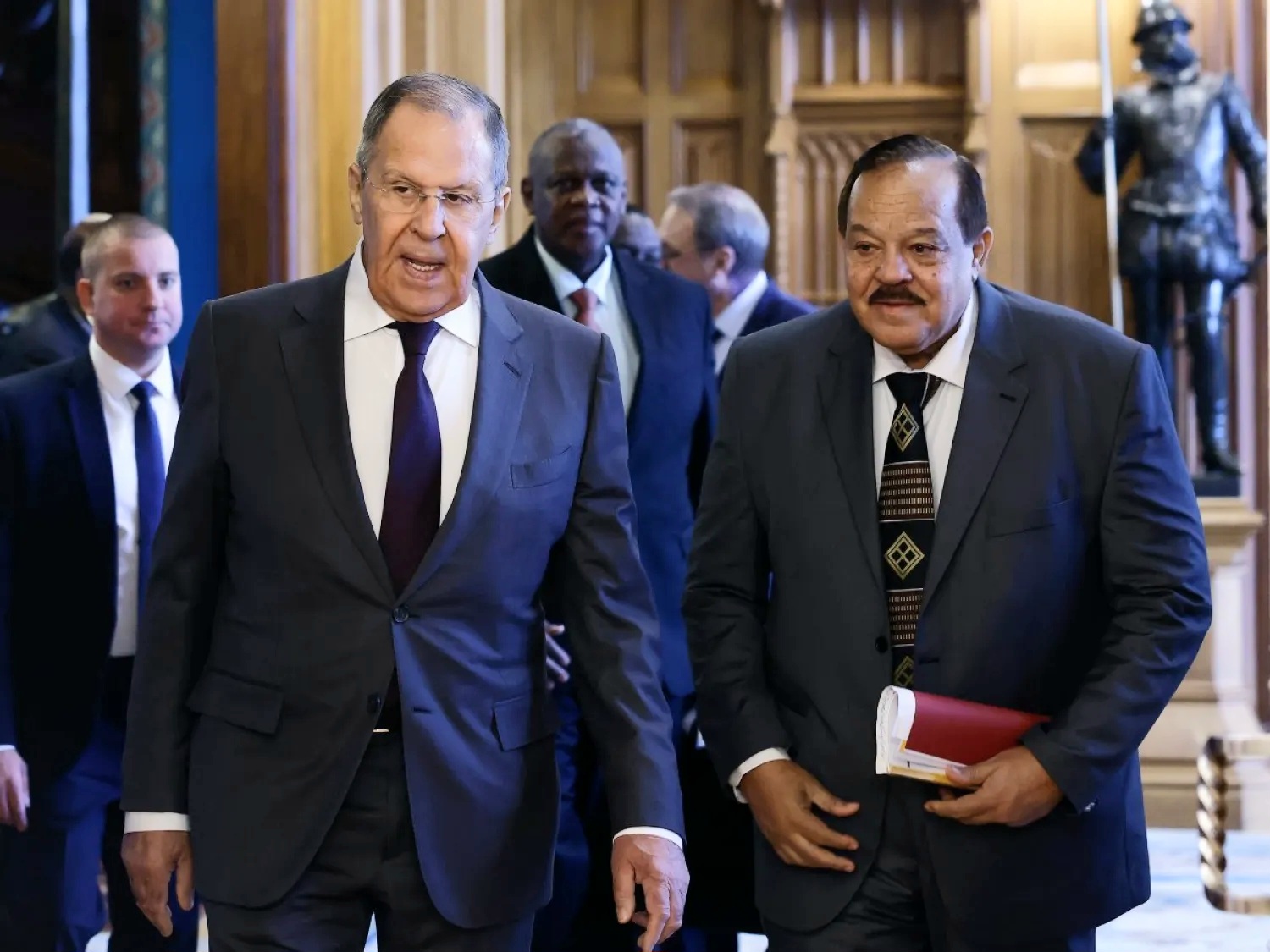 وقال وزير الخارجية السودانية نحن جئنا لنشكر روسيا علي إستخدامها حق النقض (الفيتو) لاول مرة في التاريخ في مصلحة السودان مما أبطل تدخلا خارجيا ضد سيادة البلاد ، وأكد يوسف ان علاقات البلدين قديمة جدا والعام المقبل تحتفل بمرور (70) عاما وقال إنهم يسعون لتطويرها لشركة إستراتيجية ، وقال أن بلاده نسعي للحوار مع الدول التي تتدخل في الشأن السوداني في شان هذه الحرب بدلا عن محاولات فرض الضغوط وبالقوة .