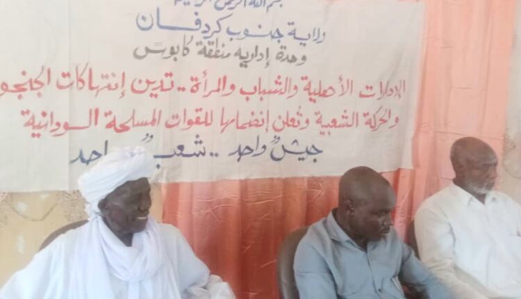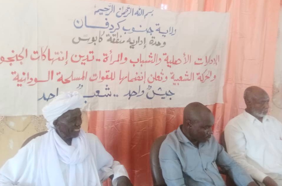 وقال ان الاداره الاهلية برئاسه العمدة الوسيلة آدم عمر التابعة لوحده (كابوس) الادارية التابعة لامارة رشاد بجنوب كردفان بجانب فئات من الشباب والمراة التابعة للادارة الأهلية ، أعلنوا عن إنسلاخ مجموعة في لقاء حاشد بقاعة رشاد للمؤتمرات بحضور المدير التنفيذي المكلف لرشاد بجنوب كردفان أحمد نولة الذي إمتدح دور الإدارات الأهلية في القيام بواجبها لحماية شعبها من الانزلاق بدماء أهالي المنطقة ، مؤمدا وقوف الحكومة مع رغبات وحماس الشباب المنفعل بقضيته والمفعم بروح الوطنية .