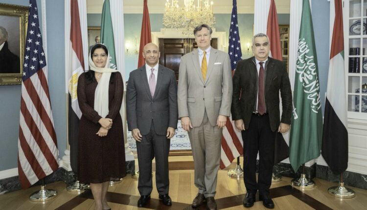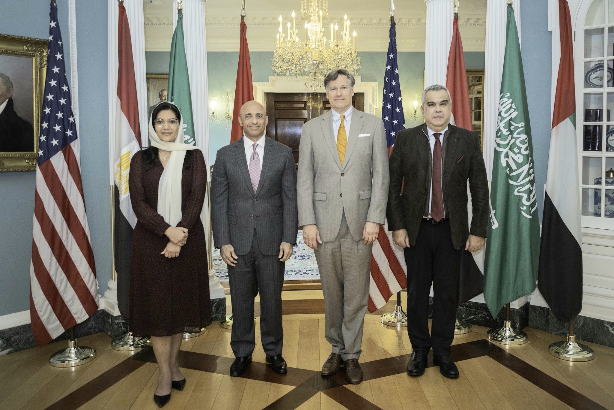 واكدت الخارجية ان نائب وزير الخارجية كريستوفر لانداو وكبير مستشاري أفريقيا مسعد بولس عقدوا اجتماعا حول الصراع في السودان مع سفراء مجموعة الرباعية لدى الولايات المتحدة ، بمن فيهم السفير يوسف العتيبة من دولة الإمارات العربية المتحدة، والسفيرة ريما بنت بندر آل سعود من المملكة العربية السعودية، والسفير معتز زهران من مصر .