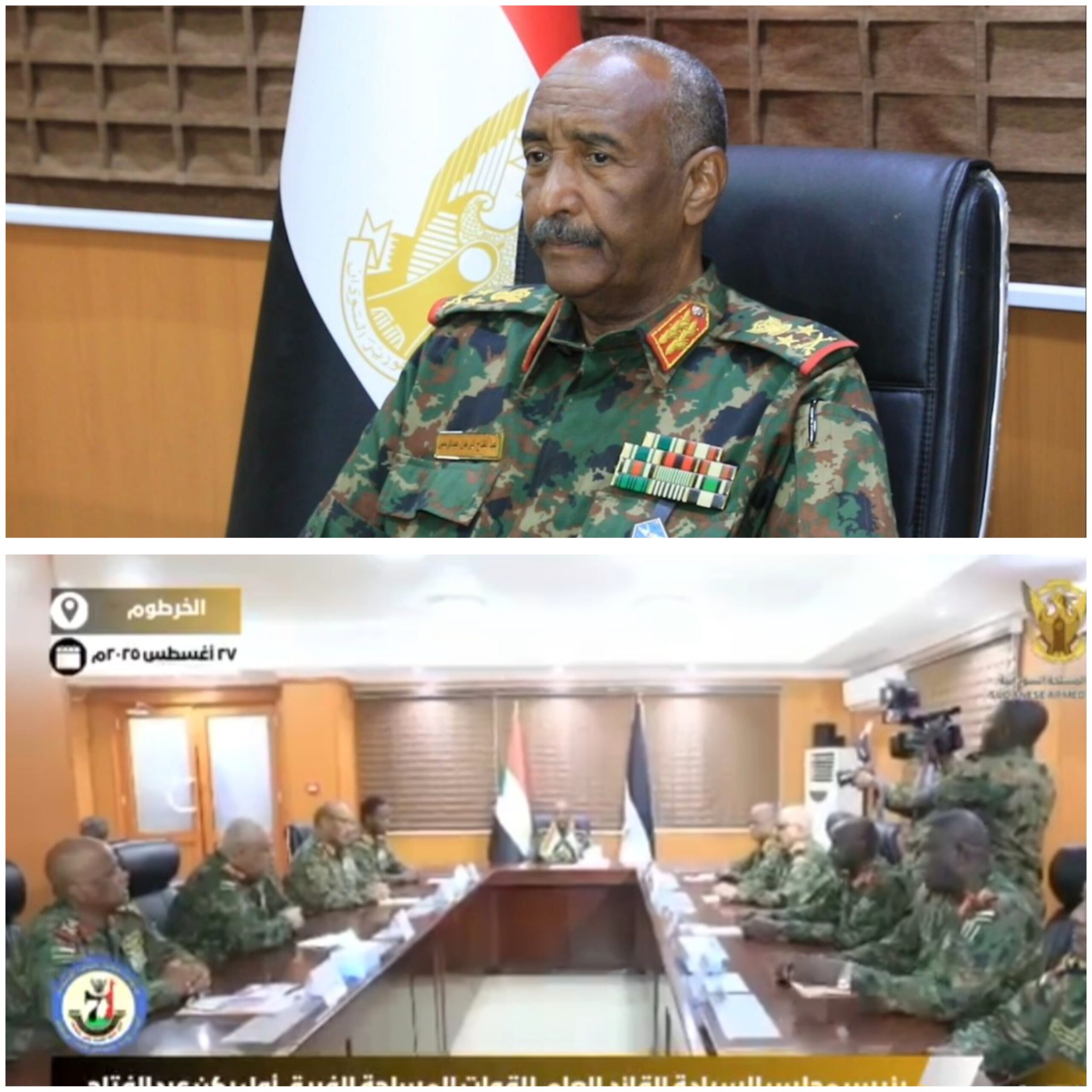 عقدت هيئة القيادة العامة للجيش اول إجتماع اها منذ تشكيها الأخير بكامل هيئتها والاول لها بالخرطوم منذ إندلاع حرب الكرامة اليوم الاربعاء 27 أغسطس 2025 برئاسة رئيس مجلس السيادة الفريق أول ركن عبدالفتاح البرهان القائد العام للقوات المسلحة ، ناقش الإجتماع الموضوعات المتعلقة بالقوات المسلحة في شتى المجالات العسكرية لا سيما شأن الحرب والمتحركات وغيرها .